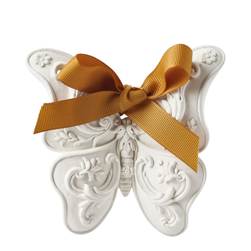 Totalmente feita à mão, esta borboleta de gesso perfuma delicada e duradouramente todos os pequenos espaços da sua casa como armários, gavetas ou malas. Colocado numa tigela sobre a mesa, transforma-se num verdadeiro objeto decorativo precioso.